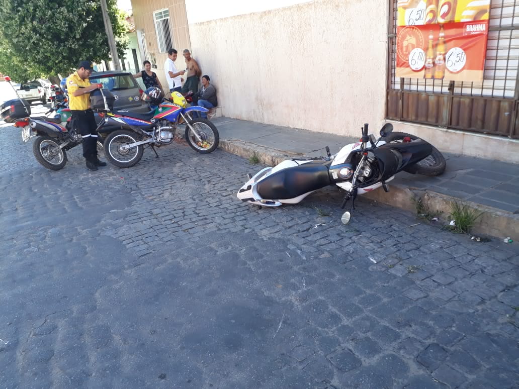O motociclista que transitava pela rua Santo Antônio, foi arremessando a alguns metros de distância, mas não sofreu ferimento.