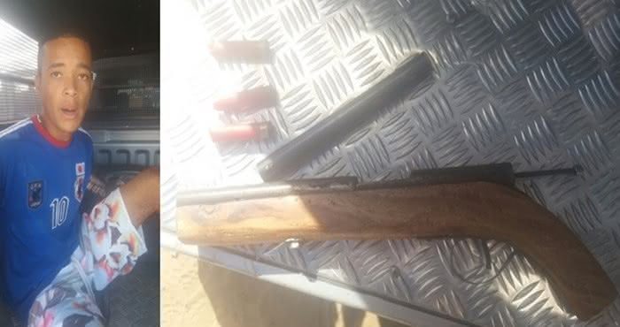 A terceira pessoa detida foi Diego Souza Ribeiro de 19 anos, portava uma espingarda de fabricação artesanal.Com ele foram encontrados três cartuchos.