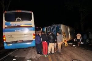 Um motorista morreu em um acidente entre dois ônibus na madrugada deste domingo, 13 de julho, no quilômetro 667 da BR-116, entre Muriaé e Miradouro, na Zona da Mata Mineira. Os veículos são da Viação Novo Horizonte e seguiam da Bahia para São Paulo. Dos 104 passageiros, 48 ficaram feridos.