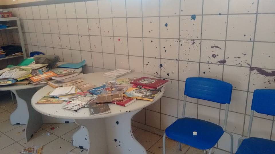 No último domingo, 16 de outubro, o colégio Luiz Eduardo Magalhães, em Malhada, no sudoeste da Bahia, foi atacado por vândalos. Paredes, computadores, livros e quadros foram pinchados.