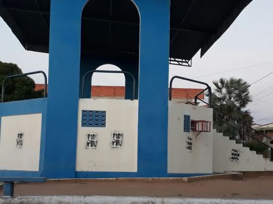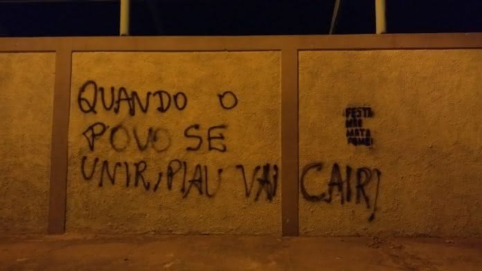 O prédio da Prefeitura de Carinhanha, o muro do estádio Presidente Médici e o palco localizado na Praça do Relógio, foram pinchados no final de semana em Carinhanha, no Oeste da Bahia. Nos locais eles escreveram: “quando o povo se unir Piau vai cair, Piau nunca mais e festa não mata fome”.