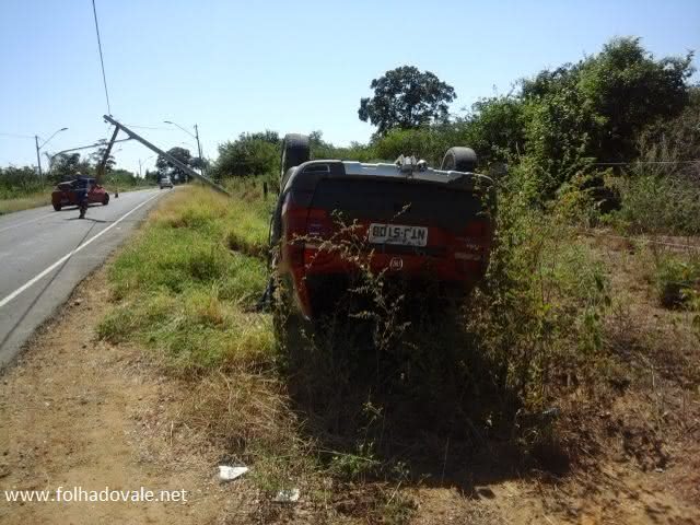 O motorista de um Pálio Adventure perdeu o controle veículo e capotou na manhã deste sábado (13), na Avenida 2 de julho, próximo ao Anel Viário da Ponte Guimarães Rosa, em Carinhanha, no oeste da Bahia. O veículo seguia sentido ao município de Malhada, quando o motorista perdeu o controle do carro, bateu no poste e capotou em seguida.