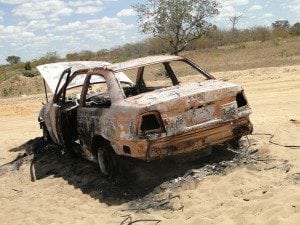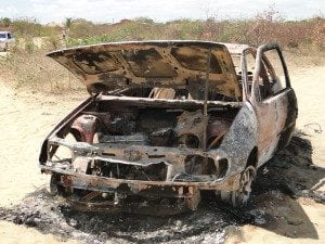 Veículo pega fogo após atolar em areia em Carinhanha