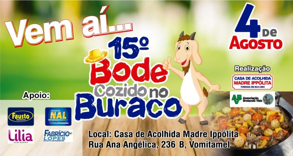 Home » Eventos » Vem aí o 15º Bode CozidoVem aí o 15º Bode CozidoO evento vai acontecer dia 4 de agosto, no bairro Vomitamel,em Guanambi. Por Joao Miguel - MTBE: 6889/BA em 22 de julho de 2019 Solicitar direito de resposta FacebookMessengerTwitterLinkedInWhatsApp